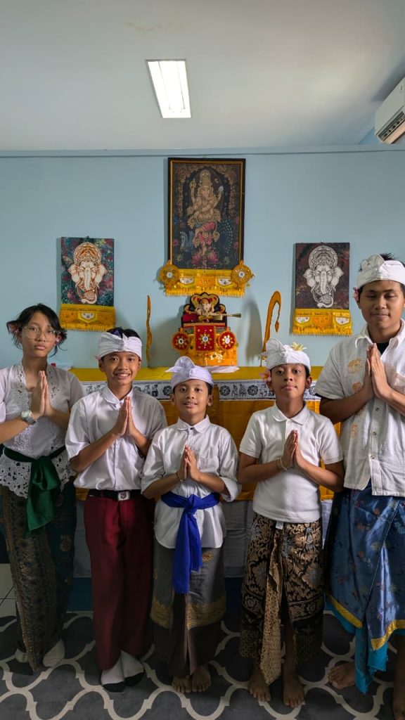 Adapun kegiatan yang dilaksanakan meliputi Tri Sandya, Kidung, dan Saraswati Puja sebagai bentuk persembahyangan dan ungkapan bhakti kepada Ida Sang Hyang Widhi Wasa. Selain itu, siswa juga mendapatkan pembekalan materi keagamaan serta pelatihan menulis aksara sebagai upaya melestarikan budaya dan warisan leluhur.