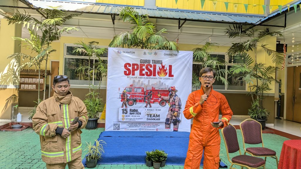 Dalam upaya memberikan pengalaman belajar yang nyata dan bermakna, SD Quantum Inti Indonesia menghadirkan kegiatan Guru Tamu Spesial bersama Tim DAMKAR pada Rabu, 15 April 2026, yang diikuti oleh siswa kelas I–III SD.